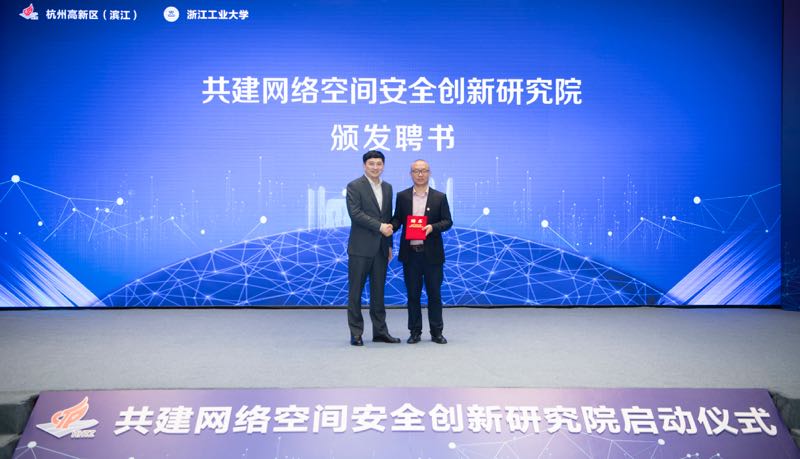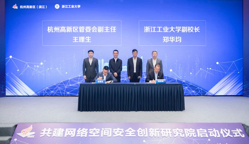 2022年5月13日,杭州高新區(qū)(濱江)與浙江工業(yè)大學(xué)共建“濱江區(qū)浙工大網(wǎng)絡(luò)空間安全創(chuàng)新研究院”啟動(dòng)儀式舉行。浙工大黨委書記蔡袁強(qiáng),區(qū)委書記章登峰出席并致辭。浙工大校長李小年、副校長鄭華均,區(qū)委副書記、區(qū)長鄭迪,區(qū)領(lǐng)導(dǎo)陶峰、王理生出席。