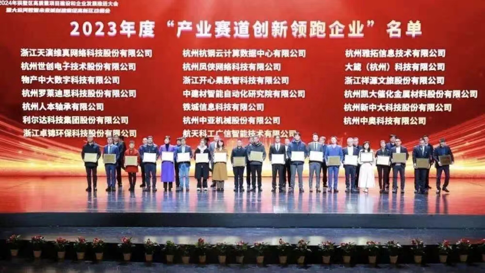 2024年2月28日,杭州市拱墅區召開“2024年拱墅區高質量項目建設和企業發展推進大會暨大運河數智未來城創建省級高新區動員會”。市相關部門領導,區四套班子領導,法、檢兩長,區直屬各單位、市直各延伸單位、各街道黨政主要負責人,大運河數智未來城中層以上干部,市有關單位處室負責人,獲獎企業代表,區內合作金融機構、高校和科研院校負責人參加。中奧科技作為獲獎企業代表受邀參會,并榮獲“產業賽道創新領跑企業”稱號。